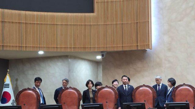 대법원 법대 오른 與…野 “사법 짓밟아” vs 與 “안내받아”